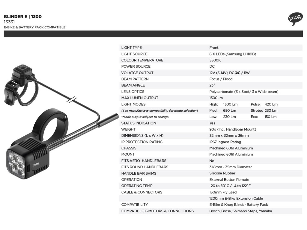 Přední světlo KNOG Blinder E-bike 1300 lm
