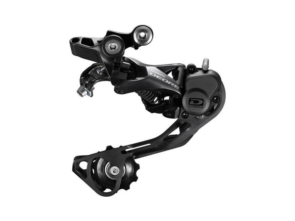 Přehazovačka Shimano Deore z nové sady nesoucí označení RD-M6000 s dlouhým SGS vodítkem, přepracovaným Shadow designem a optimalizovaným profilem zubů kladek.