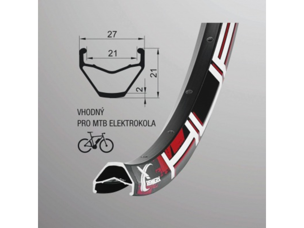 Ráfek s velmi zajímavým tvarem, který je obzvláště vhodný pro rychlá kola v náročném terénu. Tento ráfek je spolehlivý pro horská elektrokola s centrálním pohonem. Největší výhodou ráfku je jeho nízká hmotnost a vysoká spolehlivost. Nová technologie svařování ráfků zajišťuje mimořádnou pevnost a odolnost.