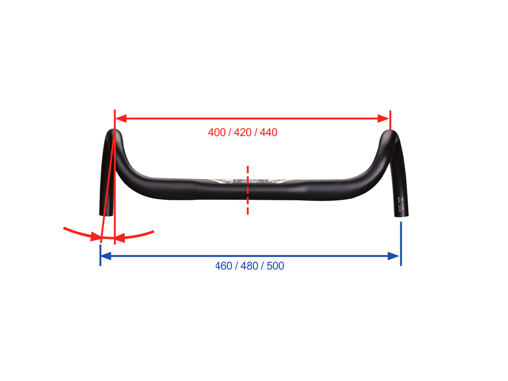 Dolní čast oblouků řidítek je vyosena směrem ven pod úhlem 12°.