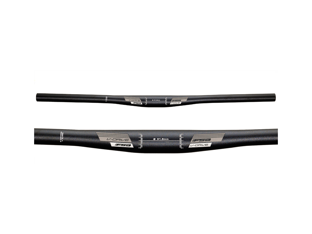 Kvalitní MTB řídítka FSA V-Drive vyrobené z lehké Alu slitiny AL6061 s dvojitým zeslabováním, jsou nabízena v šířce 740 mm se zahnutím 9 stupňů vzad a 4 stupně vzhůru.