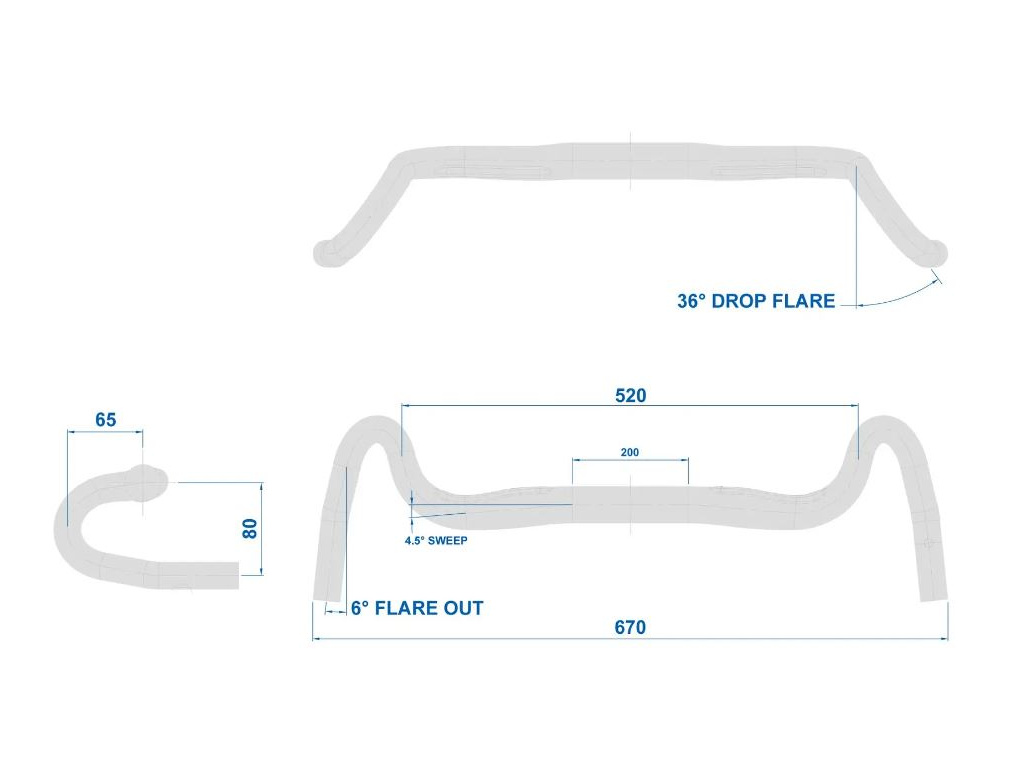 Hlavním rysem je výrazné 36° rozšíření spodní část řídítek. Kromě bezkonkurenčního ergonomického pohodlí a stability, které tento široký rozptyl poskytuje, umožňuje také dostatek prostoru pro brašny na řídítka.