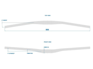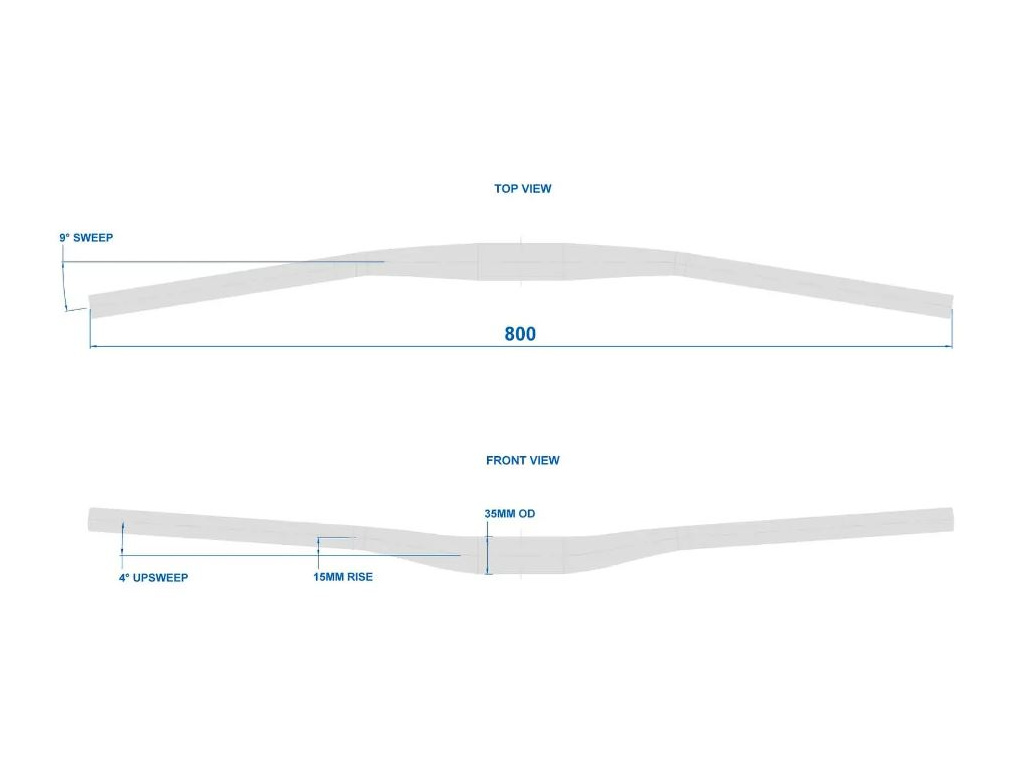 800 mm šířka, 15 mm sklon a průměr 35 mm s 9° backsweep a 4° upsweep.