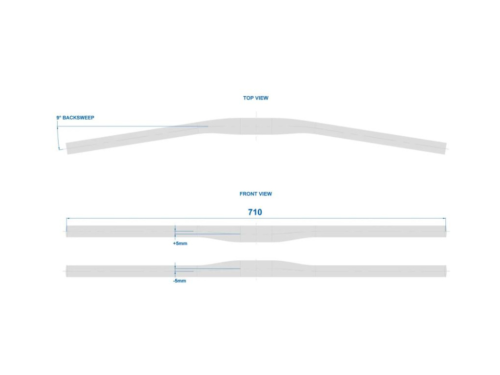Zdvih: +/- 5 mm, šířka: 710 mm, Zahnutí: 9°, provedení: Matte UD Finish, hmotnost: 180 g