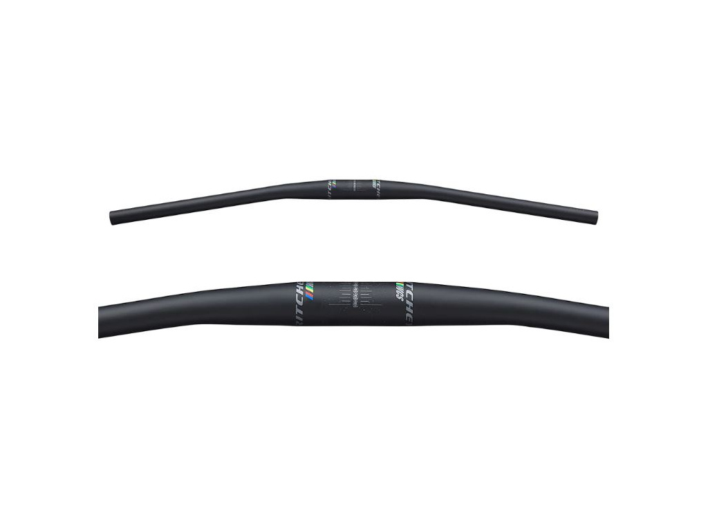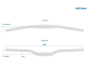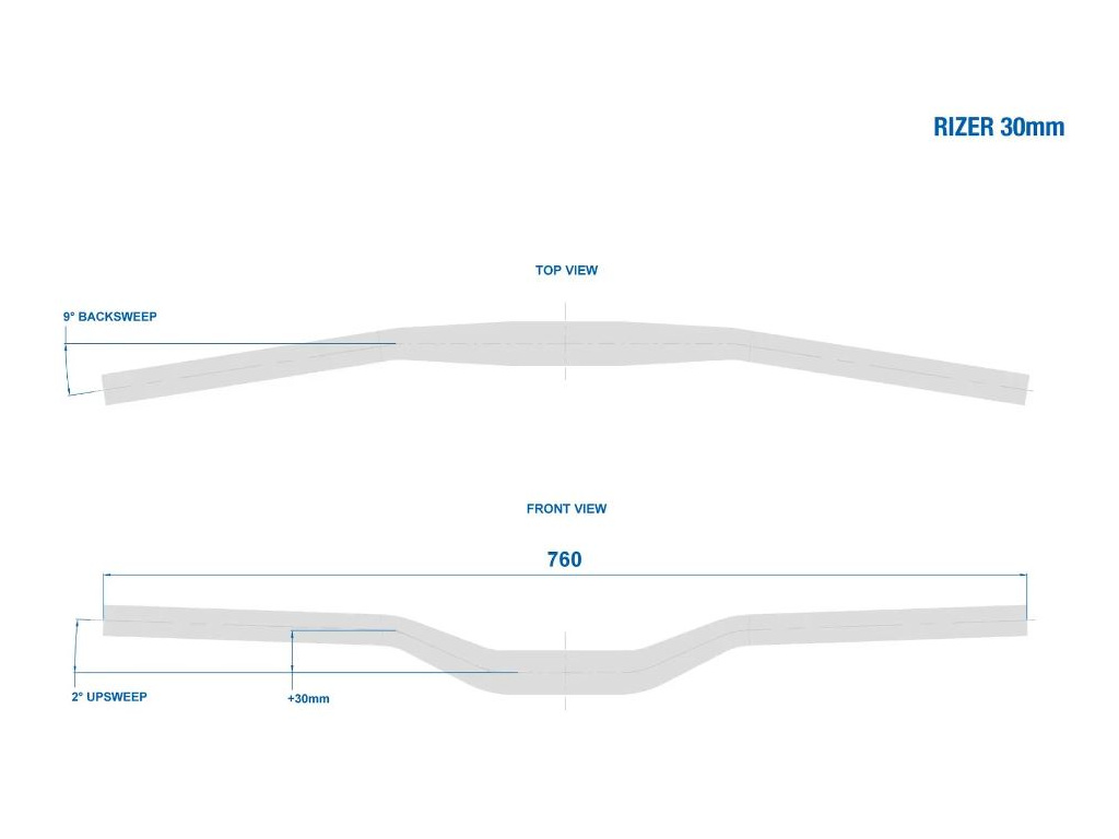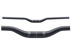 MTB řídítka šířky 760 mm, materiál triple-butted 7050 alloy, 9 st. backsweep, 2 st. upsweep, Blatte Black finiš, rise 30 mm, průměr řídítek 31,8 mm, hmotnost 242 g.