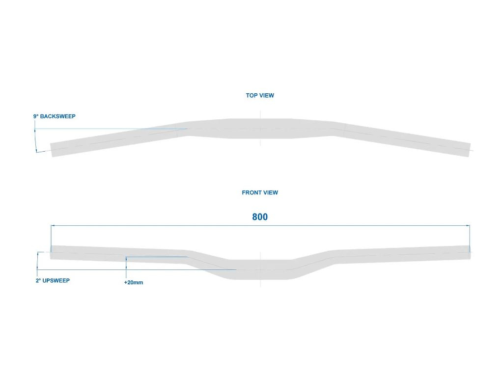 Trailová MTB řídítka Ritchey z řady WCS Trail se zdvihem 20 mm, se zahnutím vzad 9 stupňů a vzhůru 2 stupně.