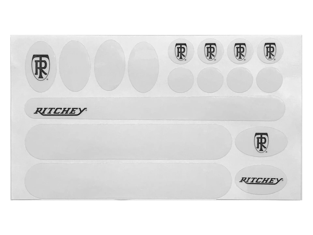 Některé z těchto průhledných samolepek mají logo Ritchey, některé ne. Nalepte je na rám a jezděte bez obav!