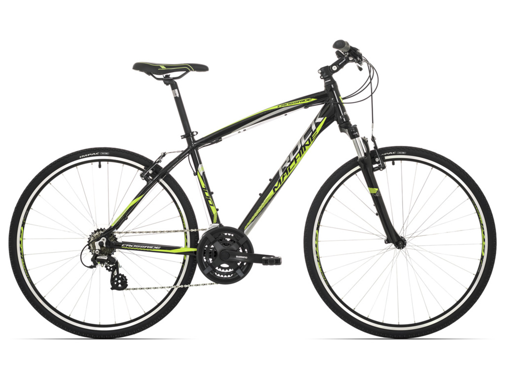 Pánské krosové kolo Rock Machine CrossRide 100 v moderním designu. Kolo je vybaveno kvalitním duralovým rámem, odpruženou vidlicí Suntour NEX s lockoutem a komponenty Shimano s 21 převody.