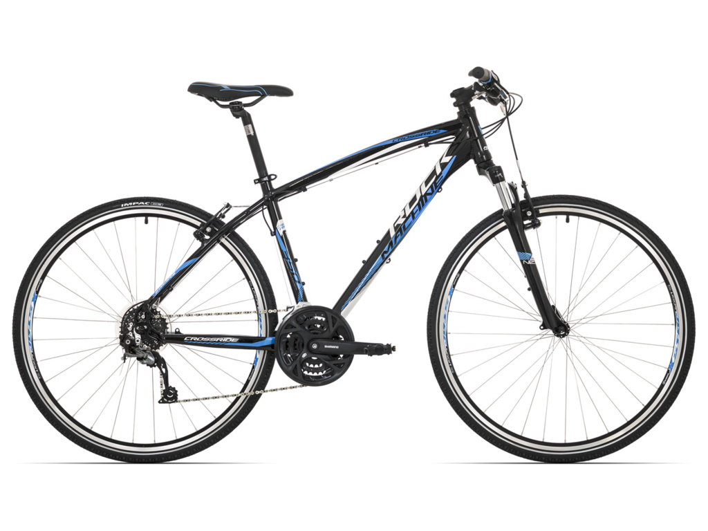 Pánské kolo Rock Machine CrossRide 350 je sportovní krosové kolo, navrženo pro maximální jízdní komfort a snadné ovládání. Základem je lehký hliníkový rám, který je osazen odpruženou vidlicí Suntour s uzamykáním a komponenty Shimano Alivio a Altus s 27 převody.