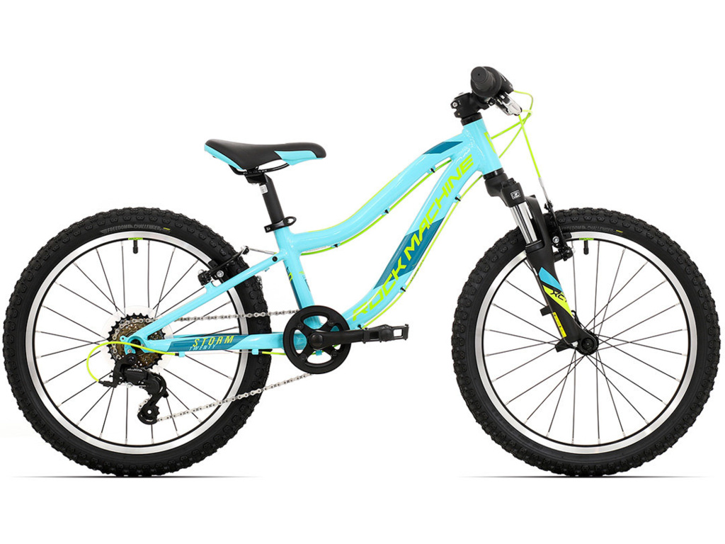 Dětské kolo Rock Machine Storm 20 s hravou geometrií, snadnou ovladatelností a účinnými ráfkovými brzdami pro zábavnou jízdu lesem i po cyklostezkách. Řazení 1x7 s rozsahem pro pohodové vyjížďky a překonání prvních kopců.