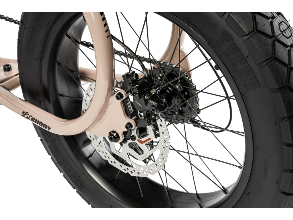 Díky odnímatelné baterii je Lil’Buddy maximálně praktický. Můžete ji nabíjet přímo na kole nebo ji jednoduše vyjmout a nabít uvnitř. Plně nabitá baterie nabízí dojezd až 100 km, takže si můžete užít dlouhé jízdy bez obav z nabíjení. Navíc díky širokým plášťům a sadě světel poskytuje Lil’Buddy hladkou a bezpečnou jízdu. Při zastavení můžete pohodlně sedět na sedle s oběma nohama na zemi, a pokud chcete, můžete dovybavit kolo opěrkami nohou a proměnit tak Lil’Buddy ve dvoumístné kolo i pro spolujezdce – ideální pro společná dobrodružství!