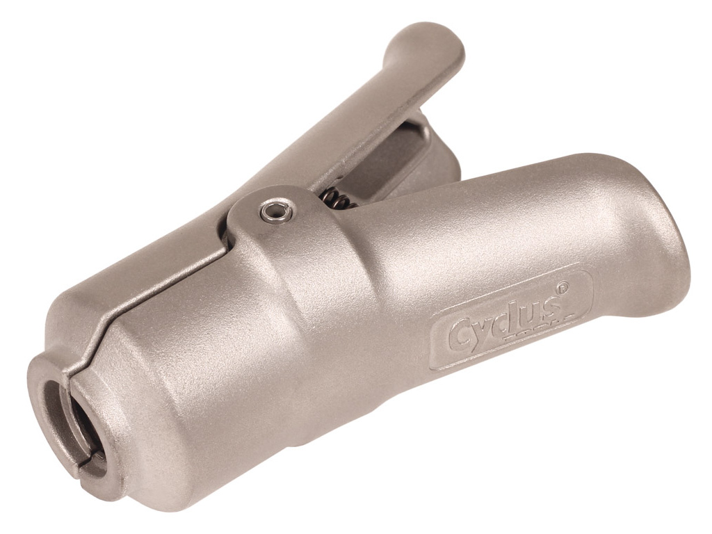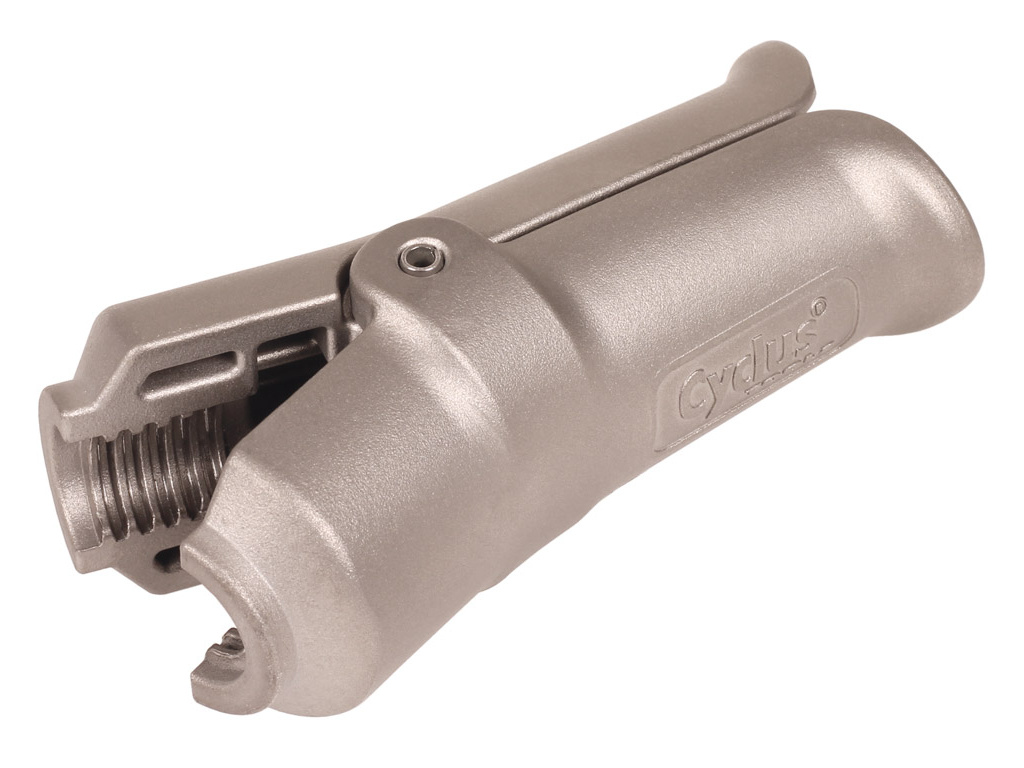 Rychloupínací svorka usnadňuje a urychluje práci se všemi lisovacími a vystružovacími nástroji CYCLUS TOOLS®, protože hlava a/nebo lisovací pouzdra jsou během několika sekund na svém místě a připravena. Stiskněte rukojeti rychloupínacího upínače a sevření závitové části se otevře, což umožní rychloupínač rychle posunout nahoru a dolů po závitovém vřetenu. Když je rychloupínač zavřený, funguje jako matice a otáčí se na závitu vřetena. Dlouhá závitová část a odolná konstrukce rychloupínače umožňují při práci používat vysoký tlak. Ergonomický tvar zajišťuje pohodlnou a bezpečnou manipulaci. Stávající lisovací a vystružovací nástroje lze tímto rychloupínačem vylepšit.