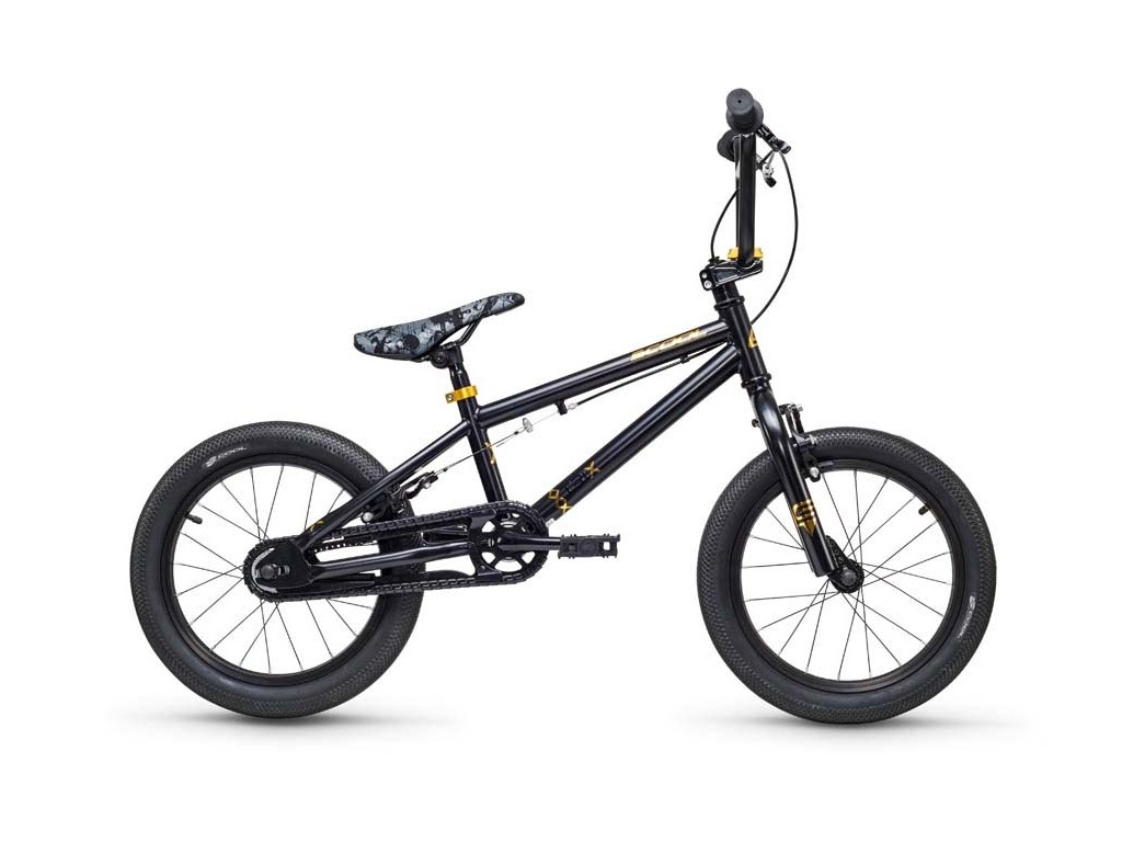 Dětské BMX kolo s průměrem kol 16" pro děti s výškou postavy nad 105 cm. Základem je odolný ocelový rám s vidlicí a komponenty, které nezklamou. Příjemným bezpečnostním prvkem je integrovaný chránič řetězu Hebie.