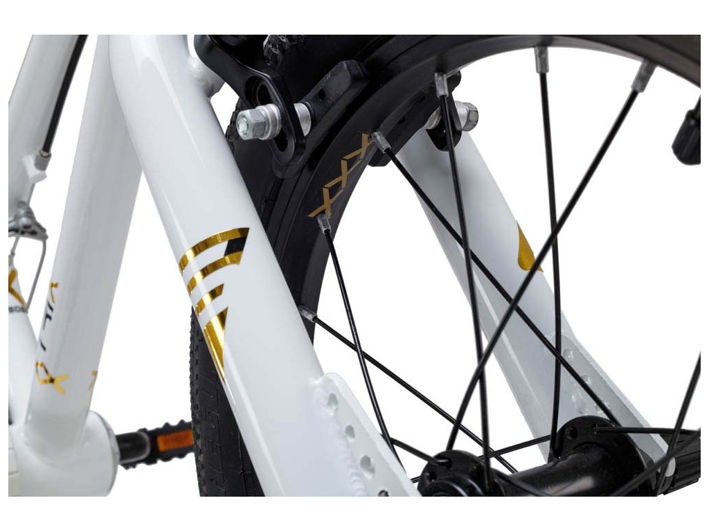 Dětské BMX kolo s průměrem kol 16" pro děti s výškou postavy nad 105 cm. Základem je odolný ocelový rám s vidlicí a komponenty, které nezklamou. Příjemným bezpečnostním prvkem je integrovaný chránič řetězu Hebie.