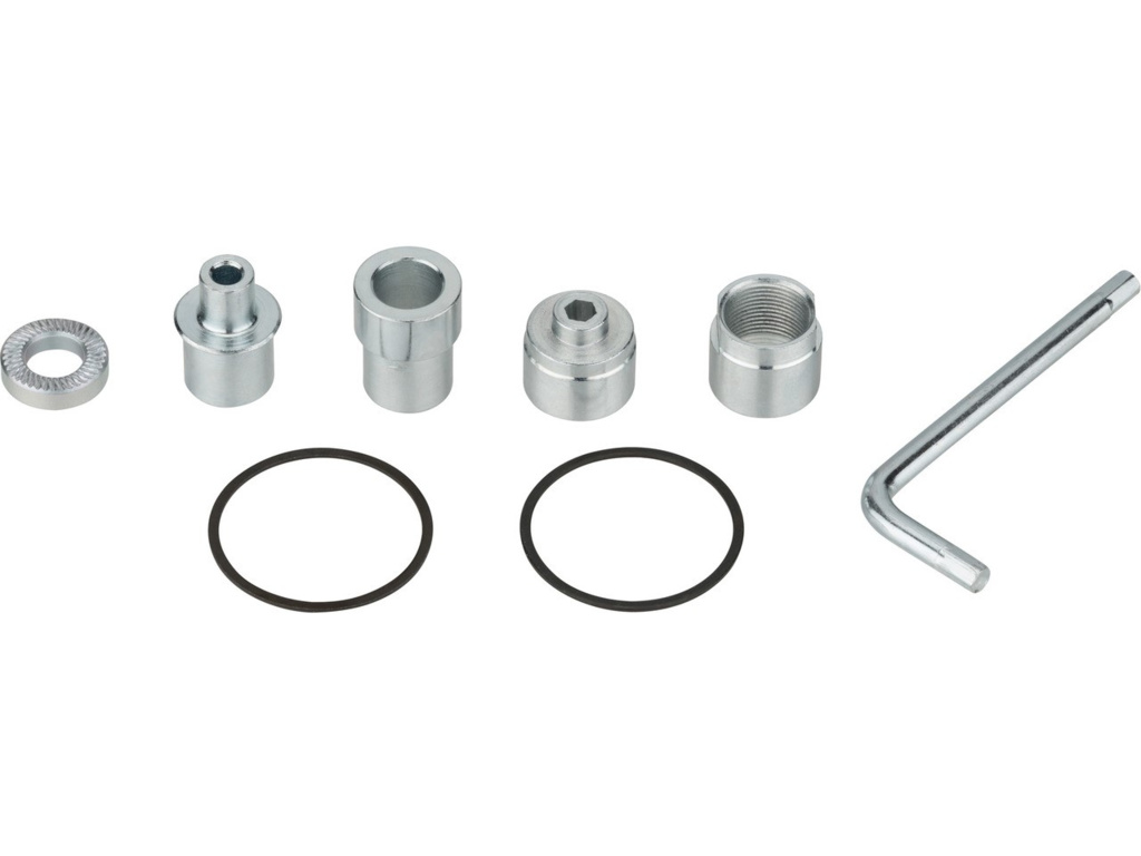 Adaptéry pro trenažéry Drivo, Direto a Turno. Sada obsahuje adaptéry pro rychloupínáky 130-135x5mm, pevnou osu 142x12mm, 2 podložky a klíč.