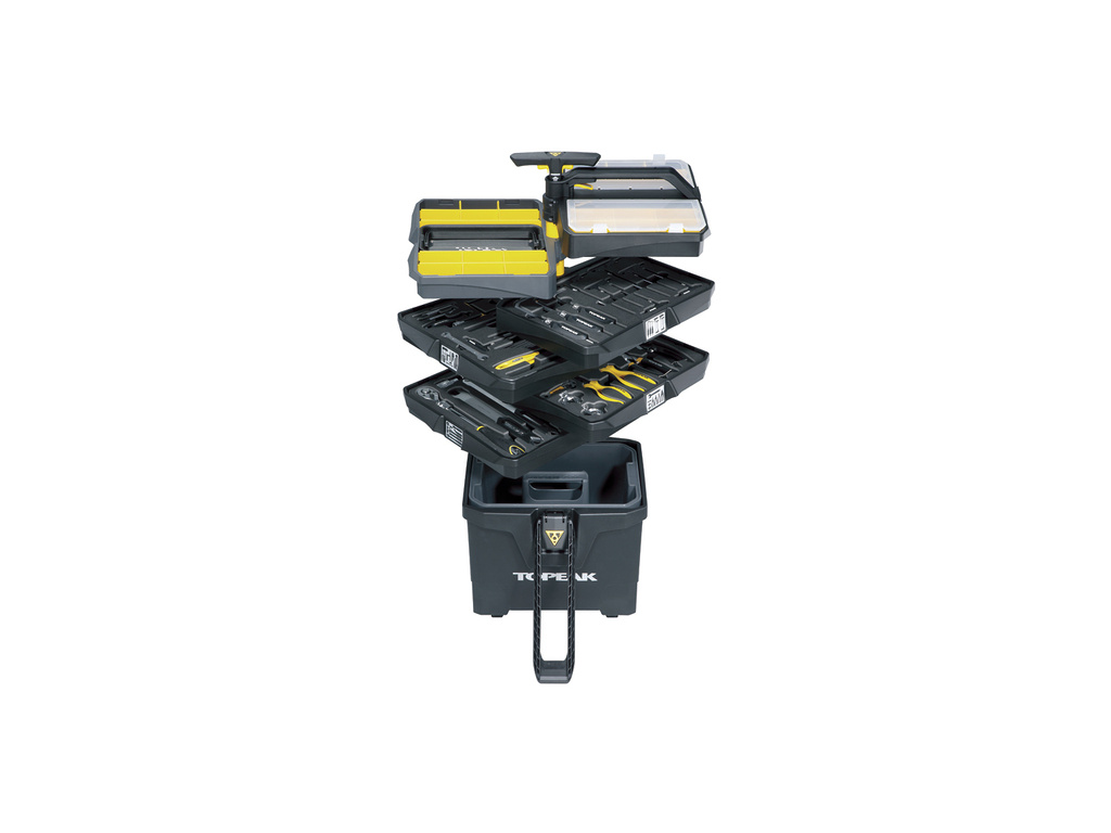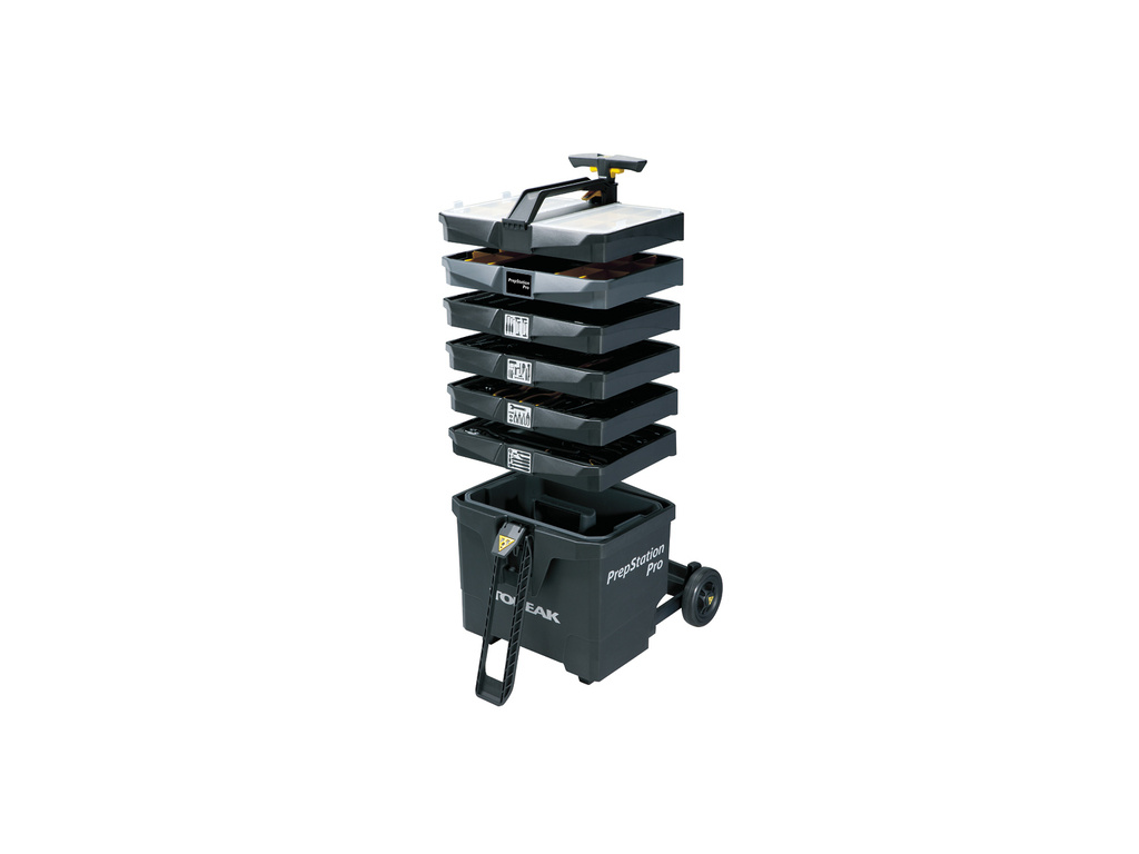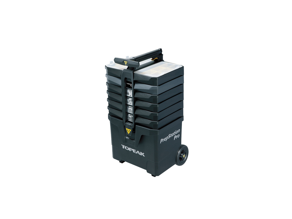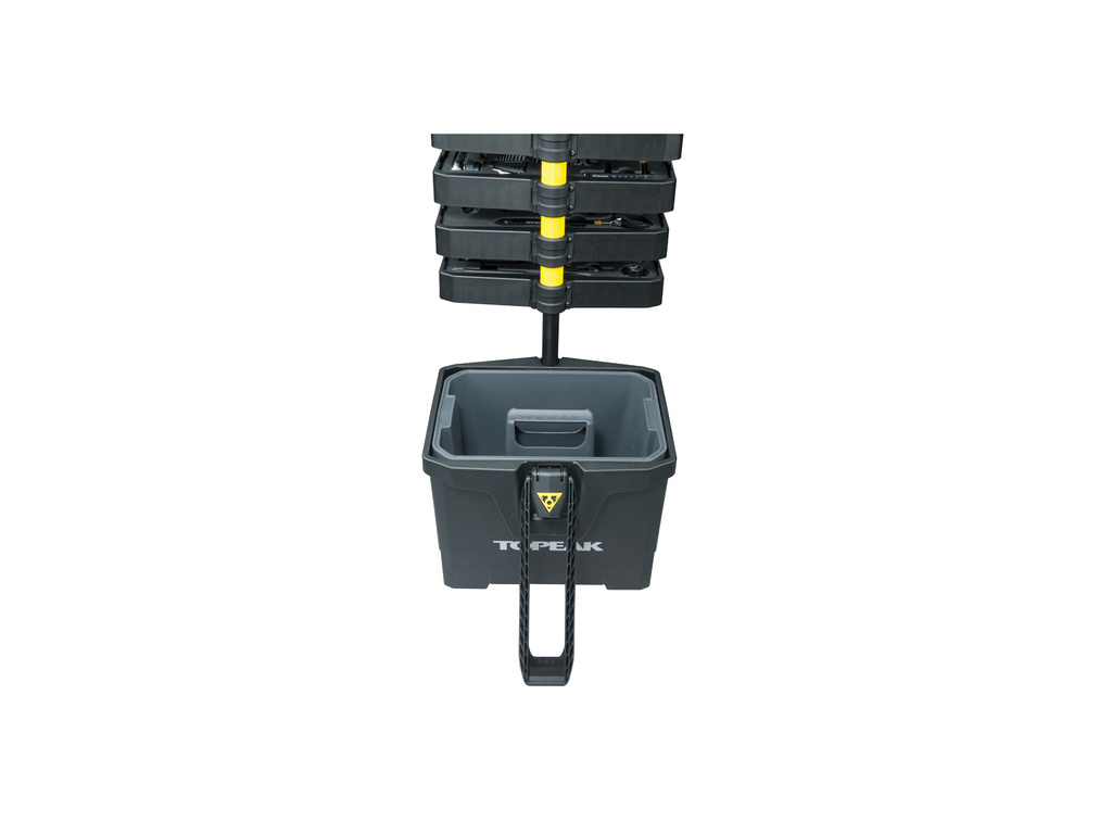 Jednotlivé zásobníky lze demontovat z vozíku a upevnit na servisní stojany Topeak PrepStand Pro, Elite a Race