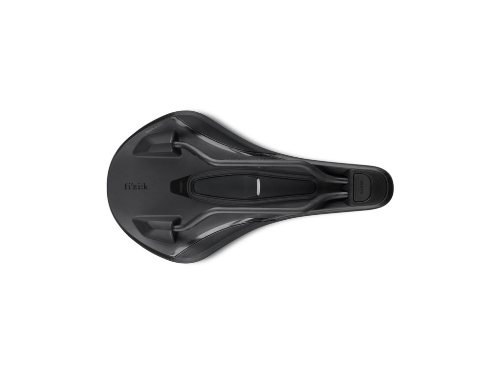 Má vylepšený ergonomický výřez navržený tak, aby zmírnil tlak na citlivé oblasti. Gumová vrstva ve spodní části výřezu funguje jako zástěrka, která blokuje nežádoucí nečistoty a sprej z nezpevněných cest.