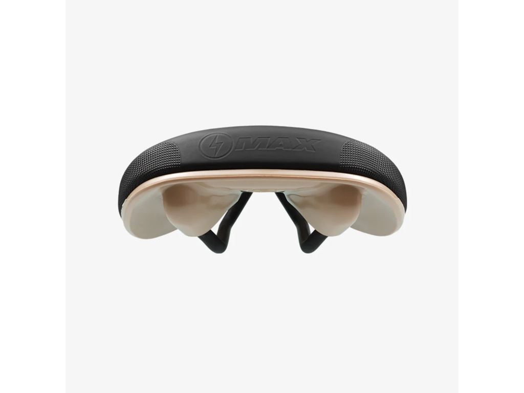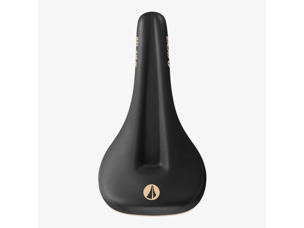 - Design: Sedlo Bel-Air V3 Max má širší tvar než standardní verze, což zajišťuje větší podporu sedacích kostí, zejména při delších vyjížďkách. Mírně zvednutá zadní část pomáhá při stoupání a zajišťuje lepší podporu, zatímco ergonomicky tvarovaná přední část usnadňuje šlapání a pohyb na kole.
