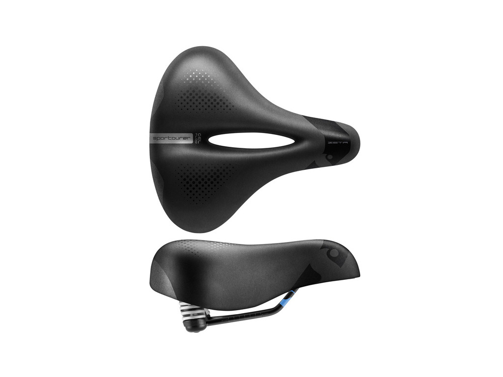 Sportourer proměnil měkkost polštářky na sedlo. Zeta uspokojí jakoukoli touhu po příjemném ježdění, přes městské ulice, jako kdybyste jezdili na oblacích. Tajemstvím je integrovaný systém zadního zavěšení (Suspension Bridge) zeta. Vzhledem ke speciálnímu anatomickému tvaru, širokému zadnímu konci a výplni Flex Control s různou tloušťkou se zvýšilo pohodlí sedáku. Sedadla High-Viz jsou vybavena speciálním systémem reflexních prvků. Co je činí speciálními? V průběhu dne jsou reflexní prvky téměř neviditelné přizpůsobené designu sedla, ale v noci jste jasně viditelný.