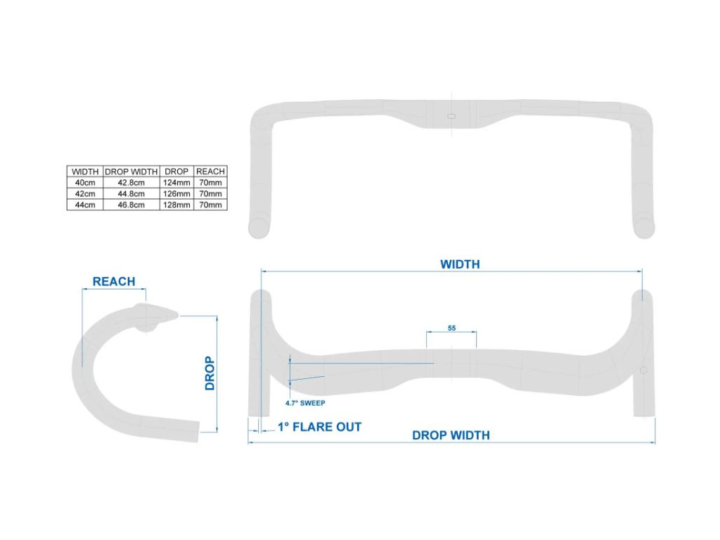 Drop: 126 mm (42 cm), 128mm (44 cm)