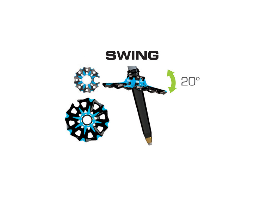 Technologie, která umožňuje talířkům holí, aby se vůči terénu naklonily až o 20° a mnohem lépe se tak přizpůsobily sklonu i v těch nejprudších svazích. Systém SWING zároveň umožní rychle a snadno měnit talířky dle povrchu, po kterém se právě pohybuješ.