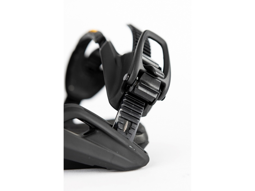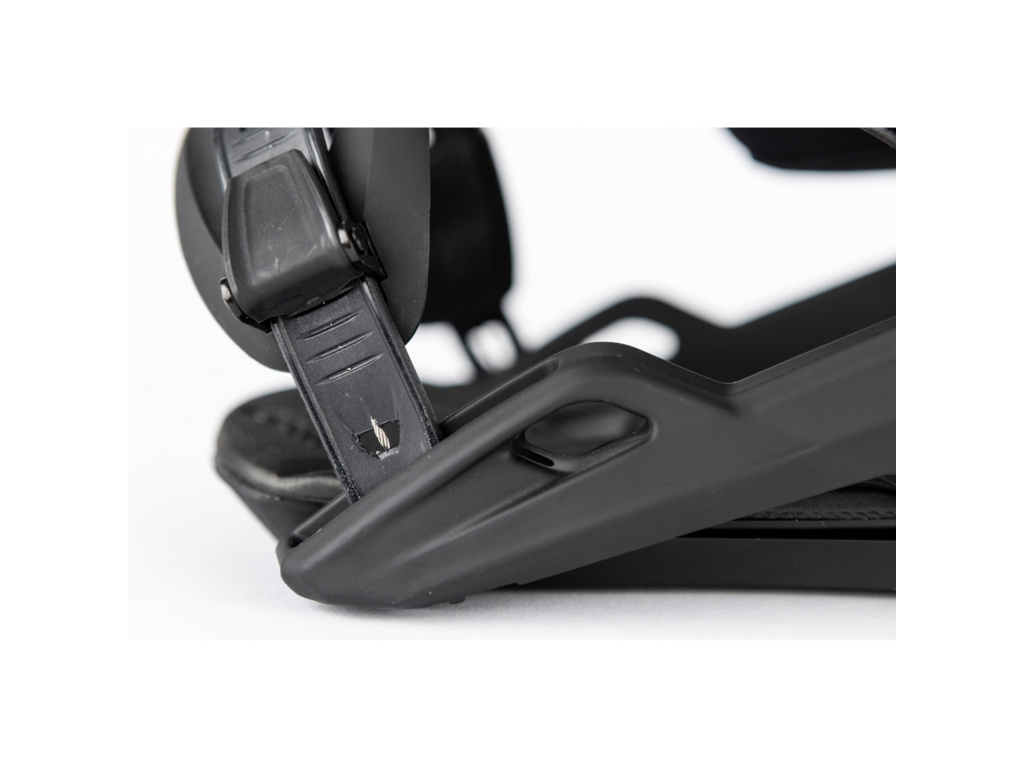 Strapy: Premium Locked Down Ankle Strap: Kotníkový strap s 3D vyztužením, 45° termopěnou a asymetrickým tvarem pro maximální přenos síly a pohodlí. ÜBERGRIP Toe Strap by Vibram®: Vysoce přilnavý strap s Vibram® Xstrek gumou – přizpůsobí se každé botě, nositelný přes nárt i špičku.