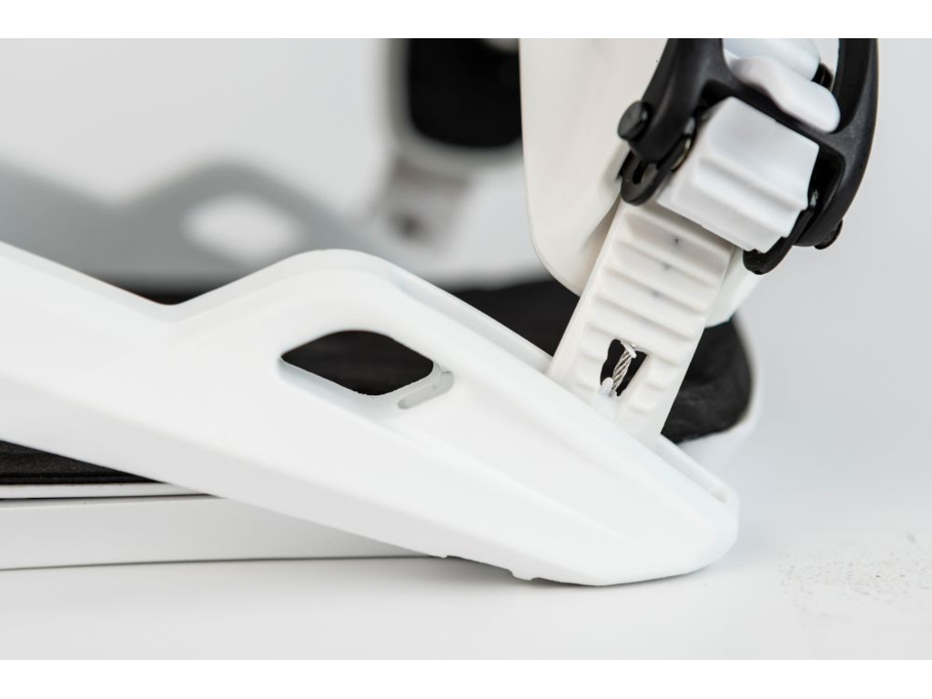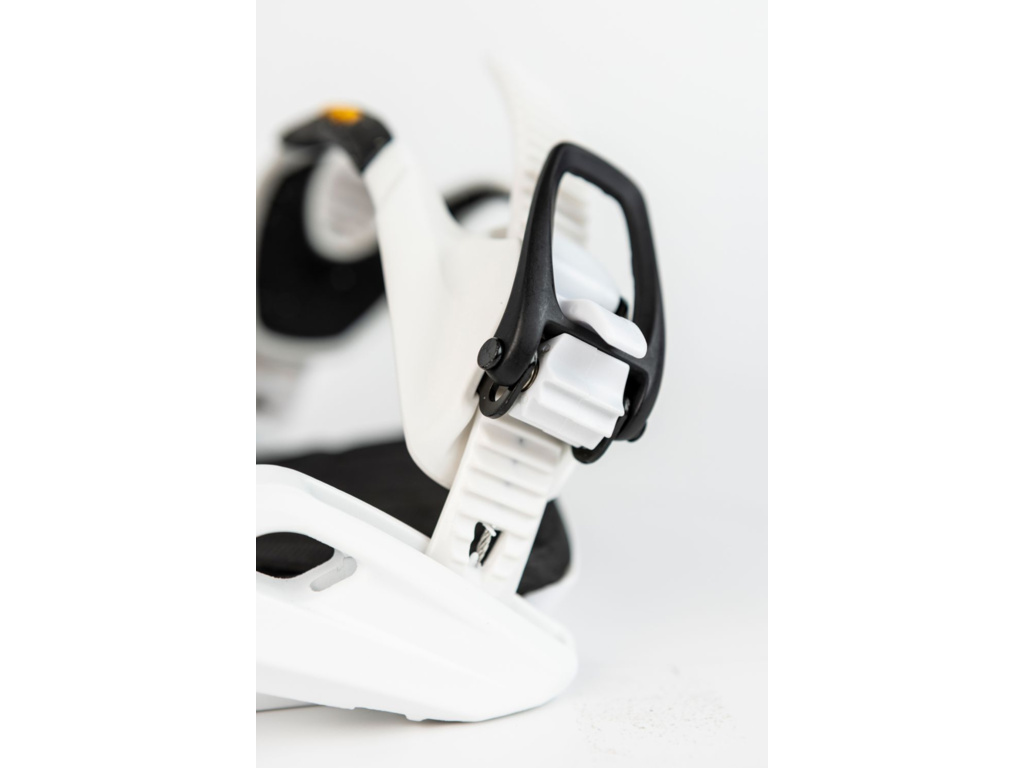 Strapy: Premium Locked Down Ankle Strap: Kotníkový strap s 3D vyztužením, 45° termopěnou a asymetrickým tvarem pro maximální přenos síly a pohodlí. ÜBERGRIP Toe Strap by Vibram®: Vysoce přilnavý strap s Vibram® Xstrek gumou – přizpůsobí se každé botě, nositelný přes nárt i špičku.