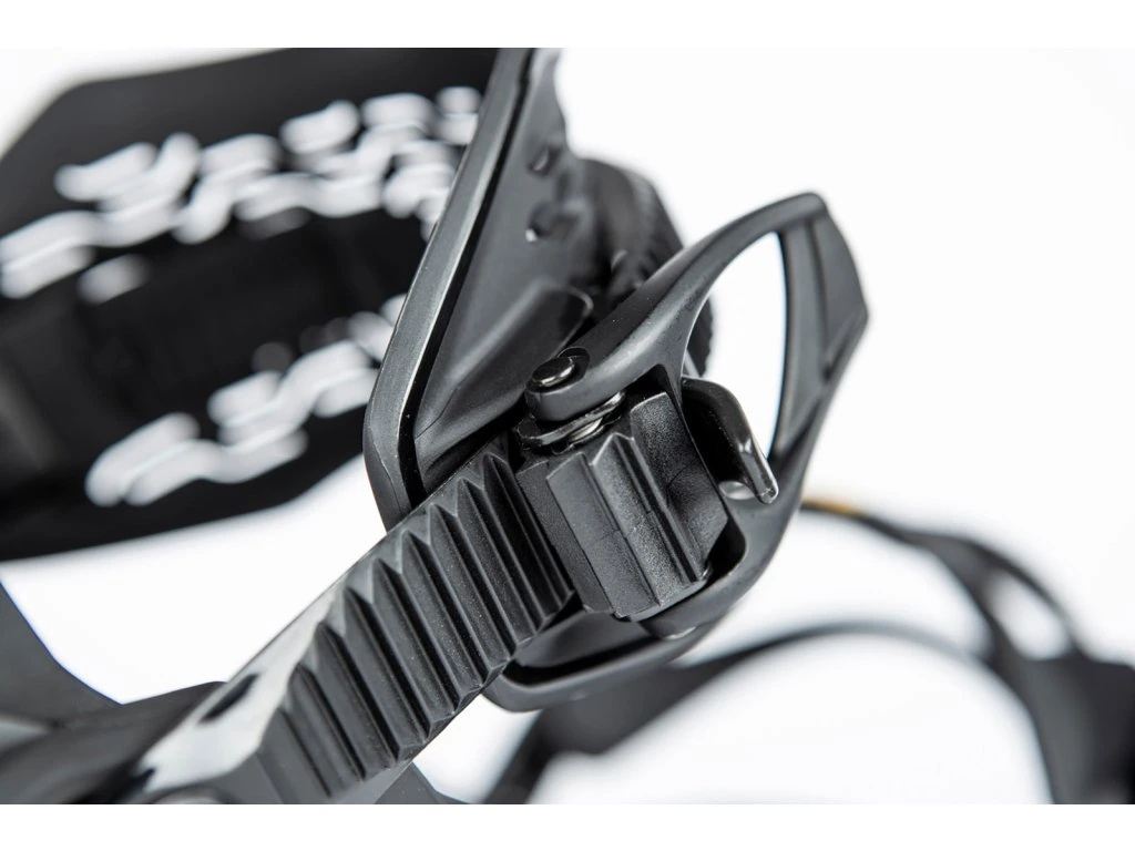 Všechny pásky jsou vyztuženy ocelovými lanky pro dlouhou životnost a spolehlivé utažení. Spodní přezka ÜBERGRIP s gumou Vibram© se postará o precizní fixaci boty, horní přezka Premium Comfort tě udrží v sedle i při tvrdých dopadech.