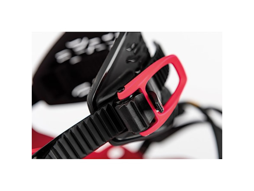 Všechny pásky jsou vyztuženy ocelovými lanky pro dlouhou životnost a spolehlivé utažení. Spodní přezka ÜBERGRIP s gumou Vibram© se postará o precizní fixaci boty, horní přezka Premium Comfort tě udrží v sedle i při tvrdých dopadech.