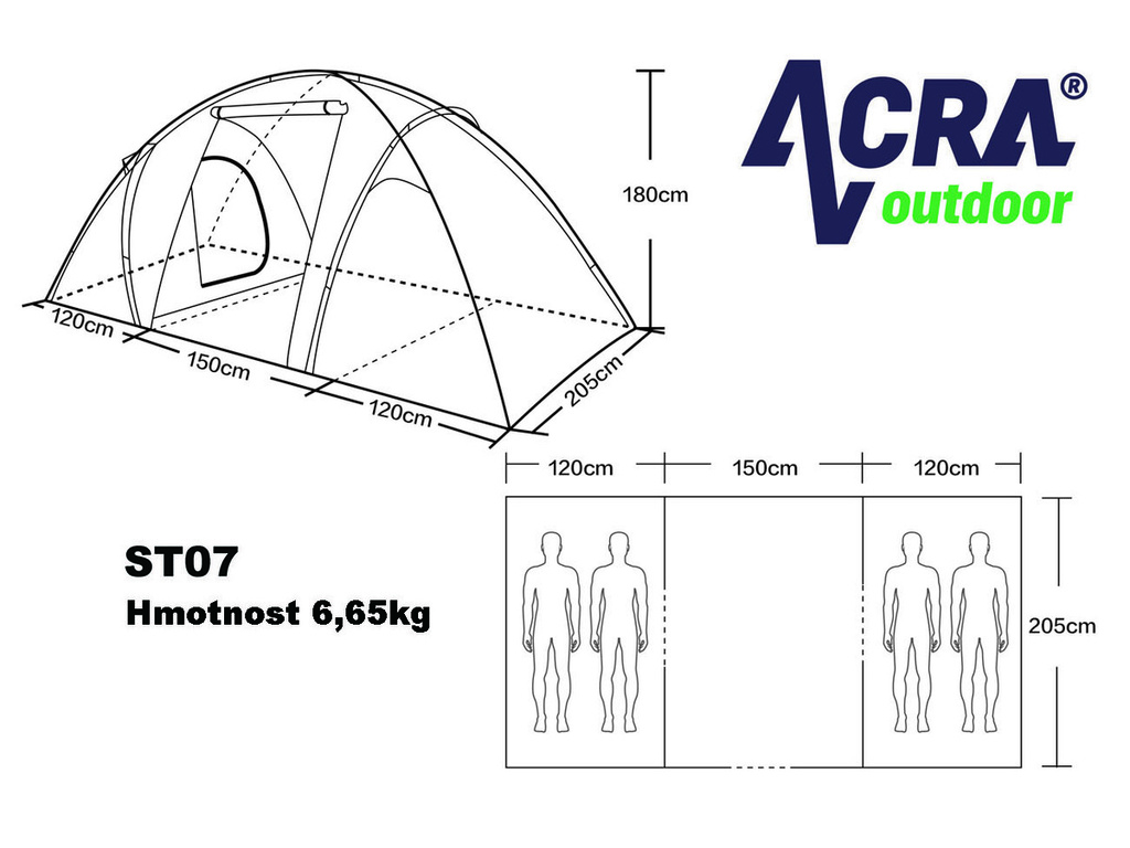 ARCA Brother ST07 je dostatečně prostorný rodinný stan pro čtyři osoby s předsíňkou. Obě ložnice jsou vybaveny moskytiérou proti hmyzu a ventilací se síťkou v horní části ložnice. Díky tomu je zajištěná optimální ventilace, aniž by se do ložnic dostal nežádoucí hmyz. Podlaha je tvořena PE materiálem s odolností vůči vodě a vodním sloupcem 3000 mm. Plášť je vyroben z polyesteru s vodním sloupcem 2000 mm. Plášť je impregnován a má podlepené švy, díky tomu je odolný vůči promoknutí. Velký rodinný stan vhodný pro příležitostné kempování s předsíňkou a slunečním přístřeškem, které spoluvytvářejí dostatek vnitřního prostoru i v případě nepříznivého počasí. I při své velikosti je velmi skladný a s pomocí laminátových prutů postavení nezabere víc než 15 minut.