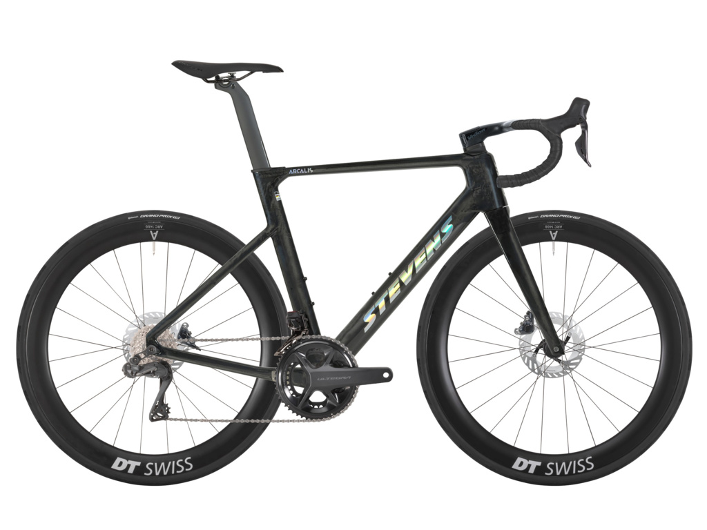 Špičkové aero silniční kolo určené pro maximální rychlost, efektivitu a závodní nasazení na silnici. Karbonový rám STEVENS Arcalis s plnou integrací, elektronické řazení Shimano Ultegra Di2, karbonová zapletená kola Fulcrum Wind 57 mm.