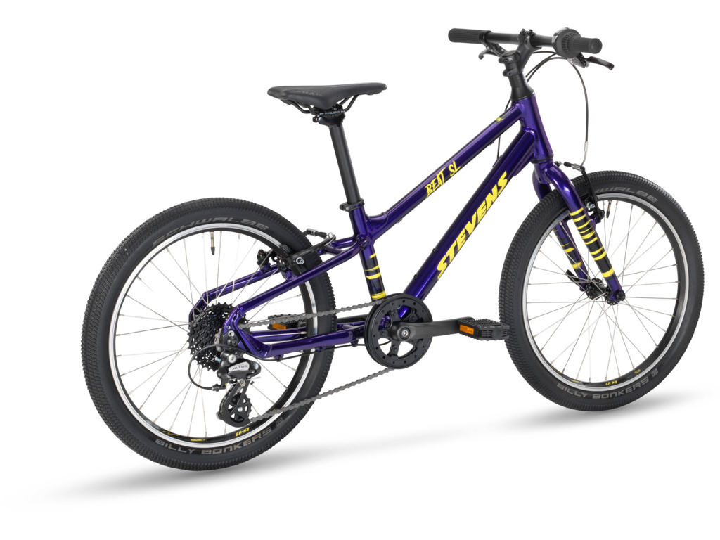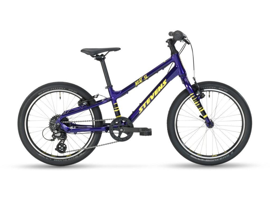 STEVENS Beat SL 20 v barevném provedení Royal Purple je sportovní dětské kolo s kompaktním rámem z hliníkové slitiny 6061 TB, pevnou hliníkovou vidlicí, otočným řazením Shimano 1x8 a přehazovačkou Altus, které díky hmotnosti pouhých 9,1 kg a rychlým plášťům Schwalbe Billy Bonkers nabízí perfektní kombinaci nízké hmotnosti, snadného ovládání a spolehlivého výkonu pro mladé jezdce na zpevněných cestách i v lehkém terénu.