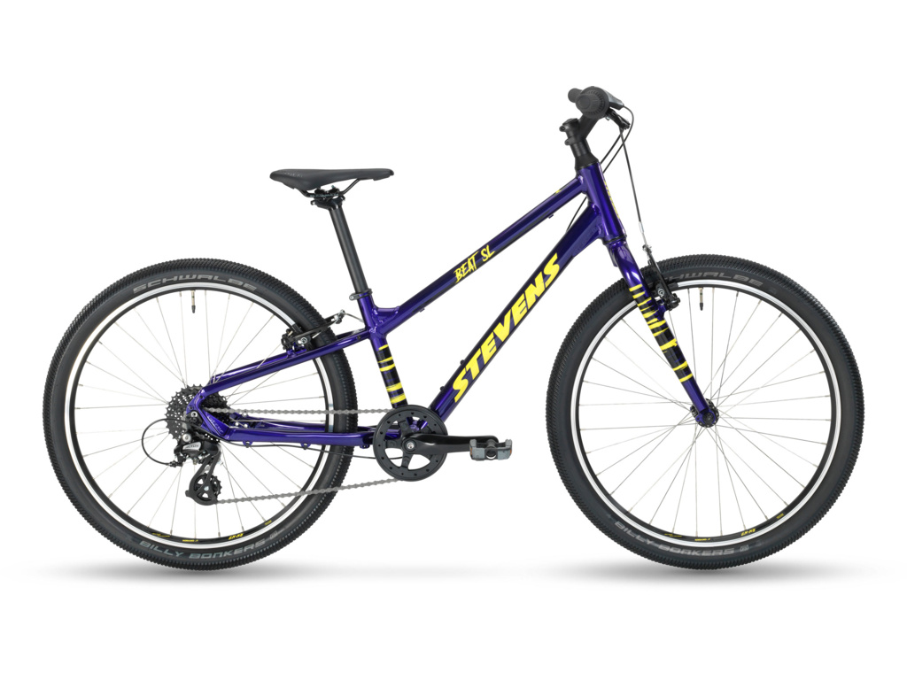 STEVENS Beat SL 24 je lehké, 24palcové dětské kolo s hliníkovým rámem, pevnou vidlicí a 1x8 převody pro svižnou a bezpečnou jízdu v terénu i na cyklostezkách. Doporučeno pro děti od 125 do 140 cm.