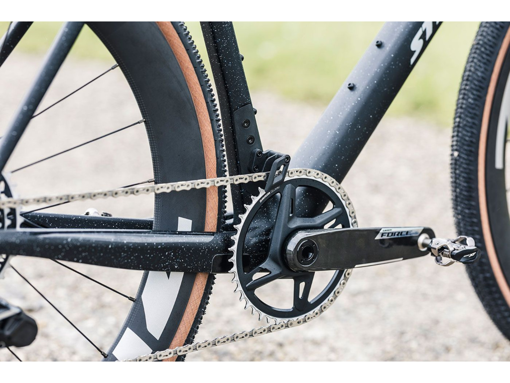Pohon zajišťuje nejnovější bezdrátová sada SRAM Force XPLR AXS s unikátním 13rychlostním řazením. V kombinaci s převodníkem 44T a kazetou 10–46T nabídne rozsah pro ostré závody i dobrodružné výpravy. Karbonová kola Zipp 303 XPLR S jsou navržena pro gravel – lehká, tuhá a odolná. O jistý kontakt s terénem se postarají rychlé a přilnavé pláště Schwalbe G-One R Pro.