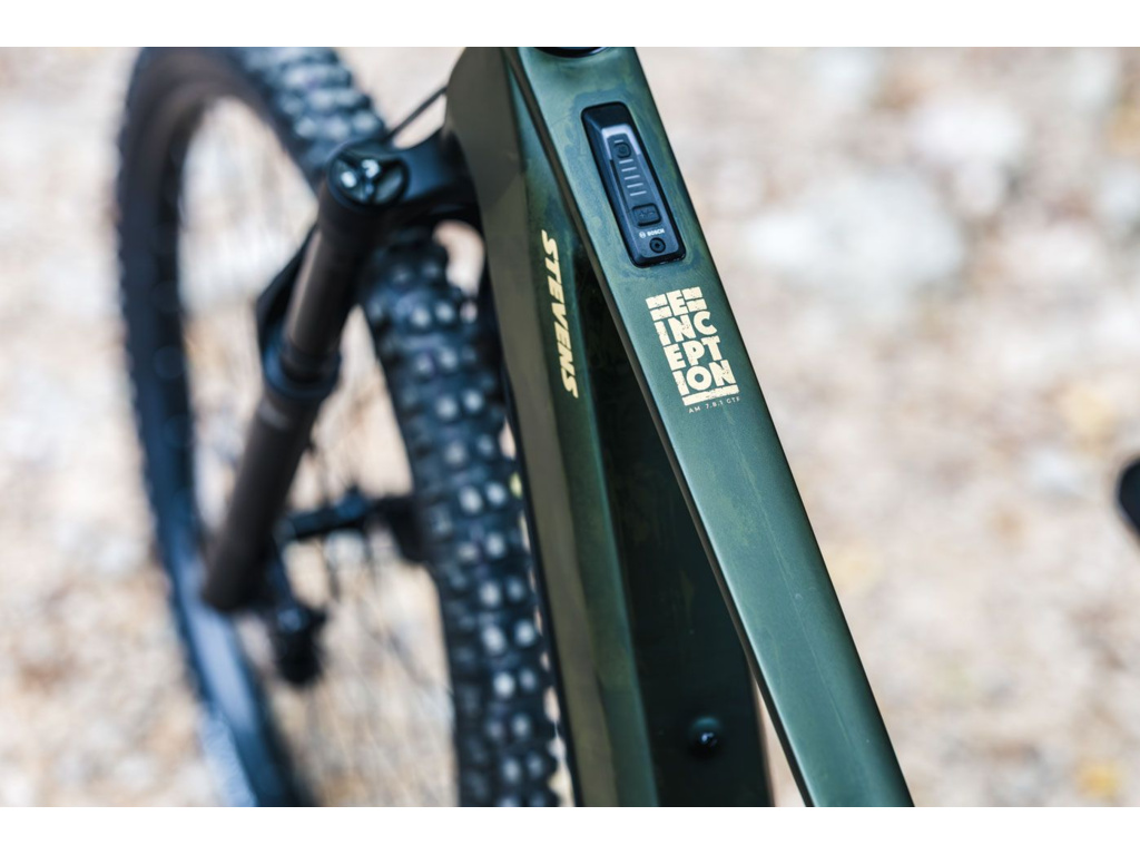 STEVENS E-Inception AM 7.8.1 GTF přichází jako všestranné e-all mountain kolo s modernizovaným rámem a vysoce funkčním osazením pro náročné traily i celodenní výlety. Je postaveno na lehkém, ale tuhém karbonovém rámu Carbon SL Fiber, který navazuje na novou generaci E-Inception – moderní geometrie, kratší zadní stavba a možnost použití dlouhých teleskopických sedlovek díky optimalizovanému úhlu sedlovky.