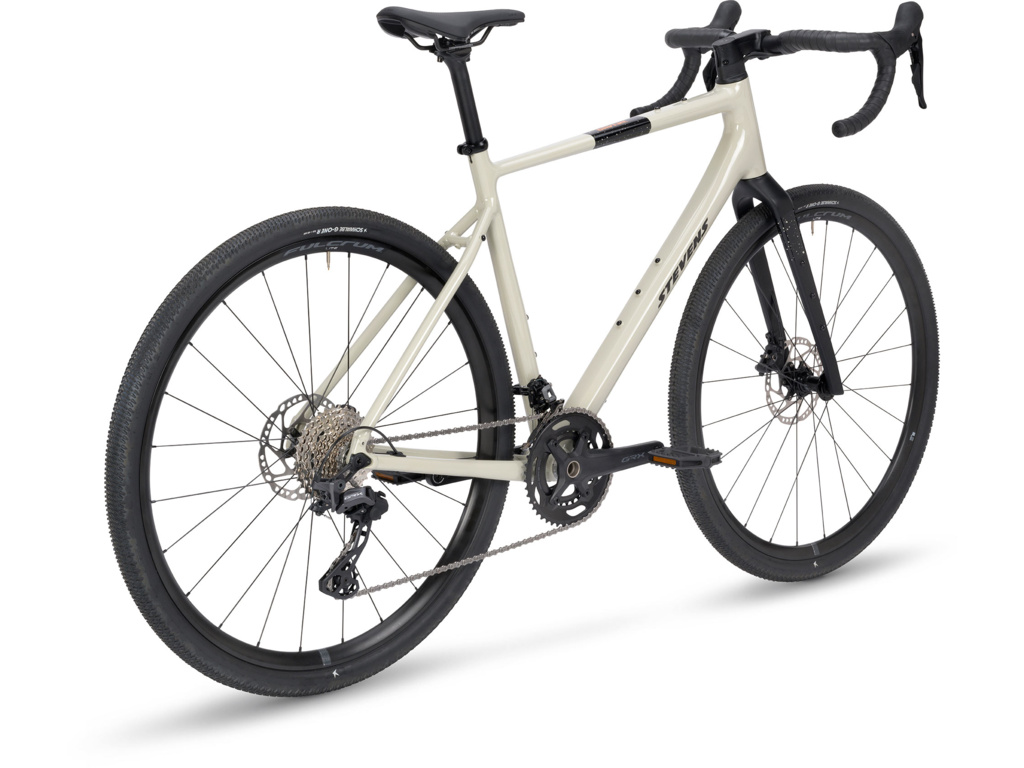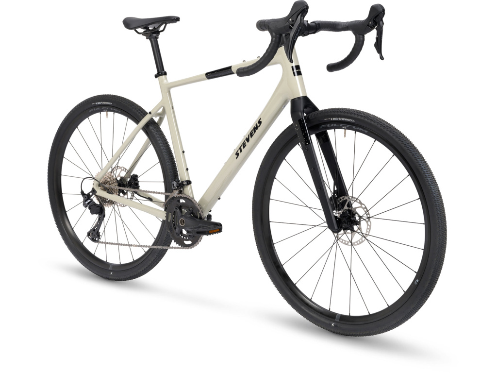 STEVENS Gavere Com v elegantním odstínu Cloudy Beige spojuje komfort, stabilitu a precizní ovládání v moderním gravelovém pojetí. Nově vyvinutý rám z hliníku 6061 je lehký, tuhý a připravený na jakýkoli terén, zatímco celokarbonová vidlice STEVENS Full Carbon SL účinně tlumí vibrace a přispívá k vysoké jízdní jistotě.