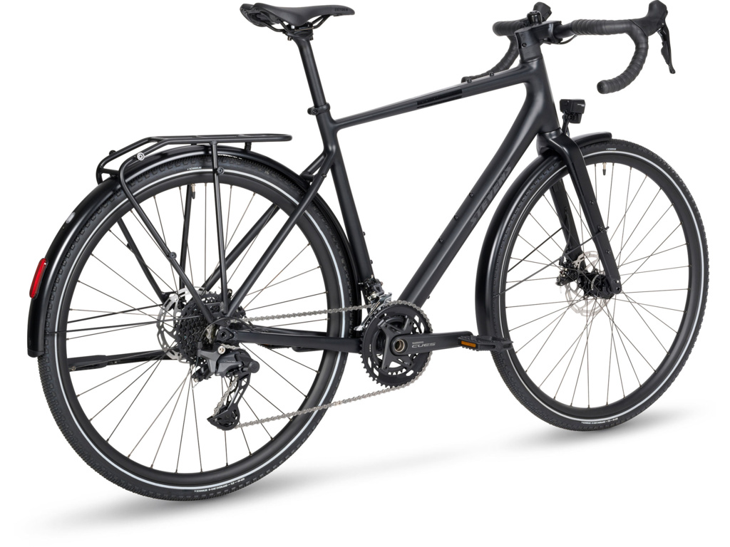 Praktický gravel bike s plnou výbavou pro každodenní dojíždění i víkendové toulky mimo asfalt. Lehký hliníkový rám, vidlice S-Lite Aluminium, pohon Shimano CUES 2×10 a výbava FEQ se světly, blatníky a nosičem.