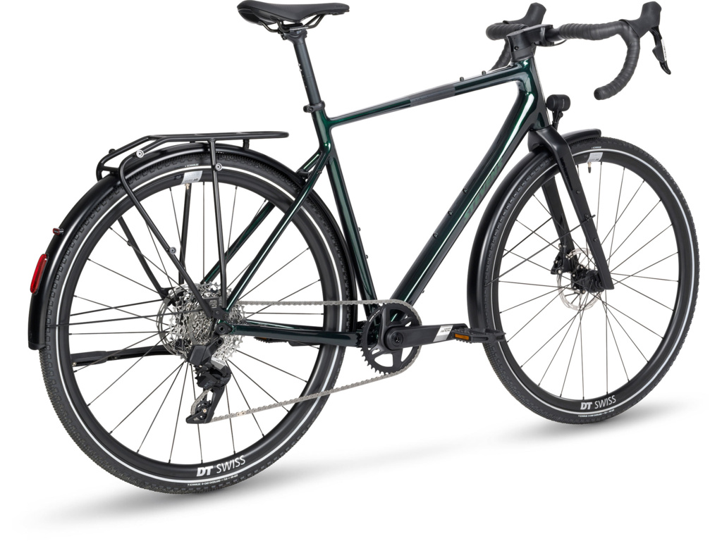 Špičkový gravel bike s kompletní výbavou pro celoroční ježdění a svižnou jízdu po jakémkoli povrchu. Lehký hliníkový rám s karbonovou vidlicí, elektronické řazení SRAM Apex AXS 1×12 a výbava FEQ s osvětlením Supernova, blatníky a nosičem.