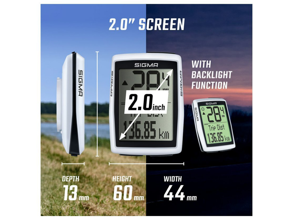 BC 12.0 WR je skutečný SIGMA ORIGINAL se spoustou sofistikovaných funkcí, je sportovní a všestranný. Nabízené funkce zaručují dokonalý přehled o podaném výkonu, a to i na dvou různých kolech. Tento kabelový cyklopočítač navíc ukládá měsíční statistiky výkonu. Zobrazuje denní kilometry, rychlost, celkový počet kilometrů, dobu jízdy, hodiny, celkovou dobu jízdy, průměrnou rychlost, porovnání aktuální rychlosti s průměrnou rychlostí, maximální rychlost a aktuální teplotu.