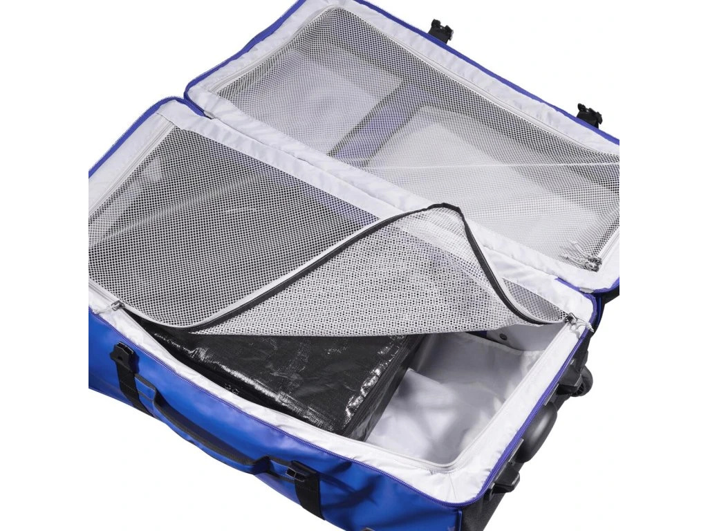 Cestovní odolná taška Salomon Race Trip Container o objemu 130 litrů je navržena s ohledem na všechny potřeby sportovců při cestování. Taška je vhodná na jízdu ve všech terénech díky tichým, otočným inline kolečkům, robustní jednodílné konstrukci dna, hliníkovému držadlu a nepromokavým oddílům. Taška je vybavena samostatným nepromokavým oddílem na boty nebo mokré oblečení, děleným vstupním otvorem pro snadné balení a snadno přístupným pouzdrem na notebook.