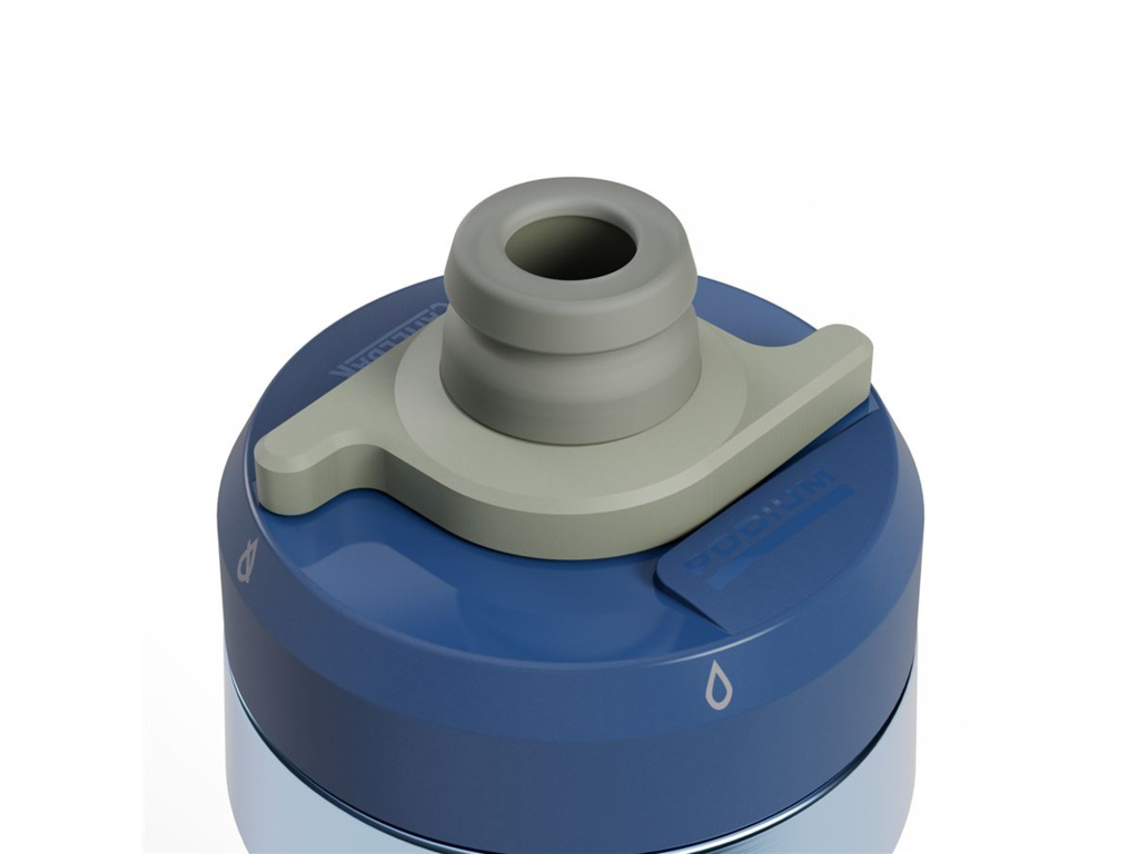 Jasně modrá trubice pod uzávěrem Podium® je Vent Tube. To je tajemství vysokého průtoku vody, když lahev převrátíte dnem vzhůru, abyste pili. Odvzdušňovací trubice umožňuje vstup vzduchu, který nahrazuje vodu, která vytéká plynule ven z lahve.
