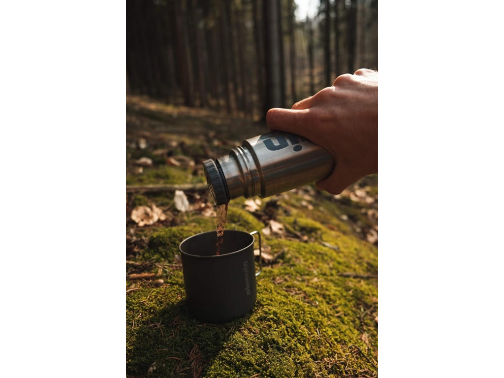 Nerezová dvoustěnná vakuová termo láhev o objemu 1000 ml se šroubovacím uzávěrem a kalíškem. Udrží horké nápoje horké a studené nápoje studené po velmi dlouhou dobu.