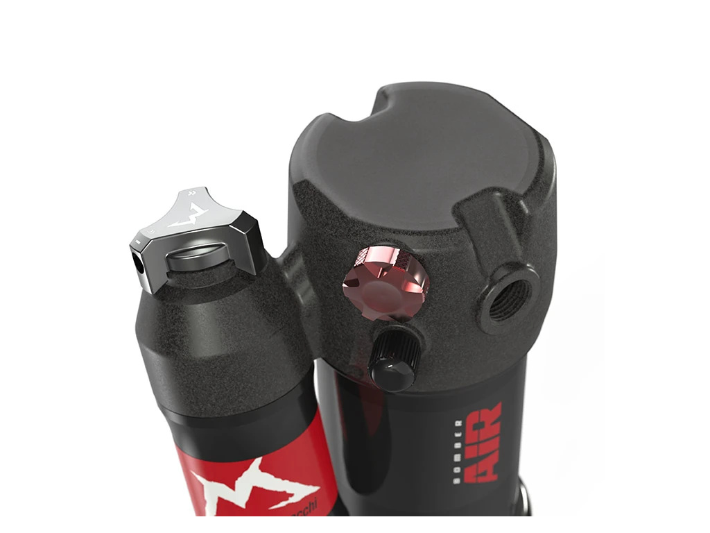 Vzduchový tlumič Marzocchi Bomber Air poskytuje díky asymetricky osazené nádržce lepší možnosti osazení do různých rámů a snadný přístup k ovládání komprese.