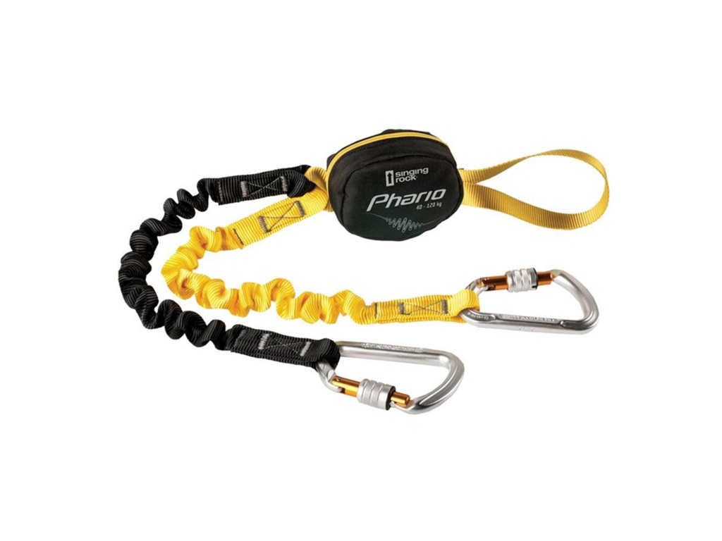 Párací tlumič pádové energie pro zajištěné cesty? To je model SINGING ROCK Phario vhodný pro lanová centra, zajištěné cesty via ferrata a lanové parky s karabinami s automatickou pojistkou.