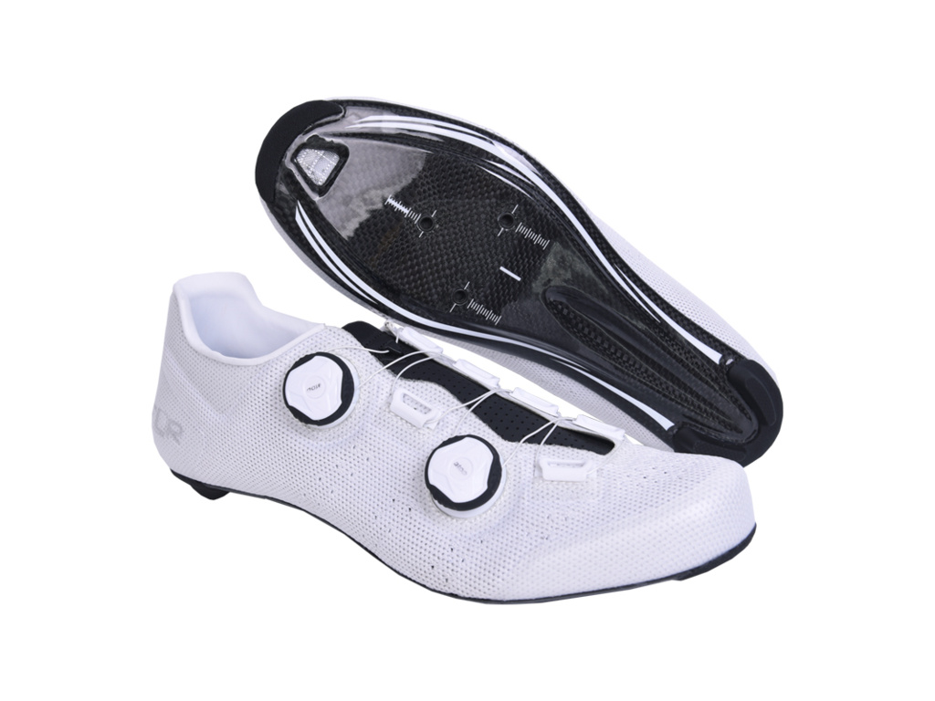 Silniční tretry FLR KXX Knit WT, s podrážkou z karbonových vláken, svršek z trojité vrstvy extra silné nylonové příze a s výkonnou tlumicí vložkou. Závodní tretry zaměřené na podporu vašeho výkonu.
