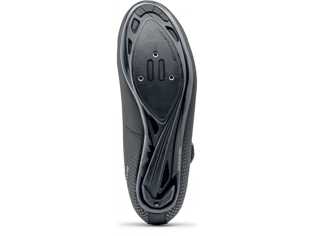 Nově vyvinutý typ zimních silničních cyklistických treter NORTHWAVE Celsius R GTX s membránou Pique Gore-Tex. Optimální přenos energie na pedály umožňuje karbonová podešev z materiálu NRG Air Carbon i technologie Overlap ultra-fascing využitá při výrobě svršku.