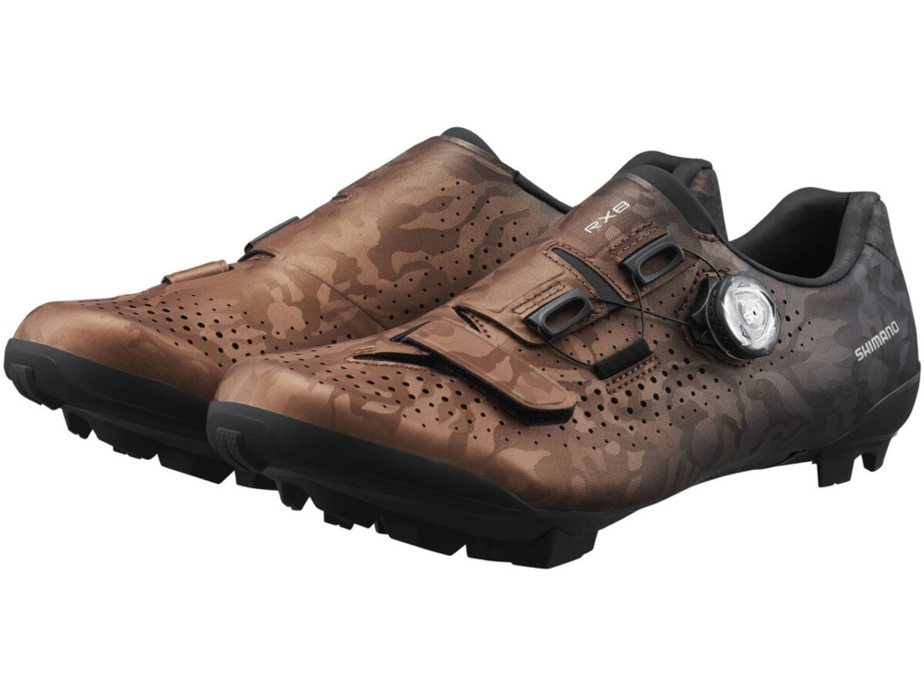 Model Shimano SH-RX800 je závodní terénní obuv primárně určená pro gravel, ale lze ji použít i na cross-country terénní ježdění. Má vysoce tuhou a lehkou podešev, systém upnutí BOA, lehké výstupky z TPU a obepínající strukturu svršku.