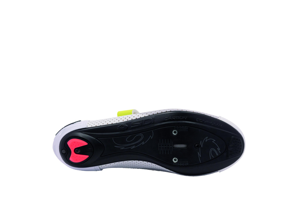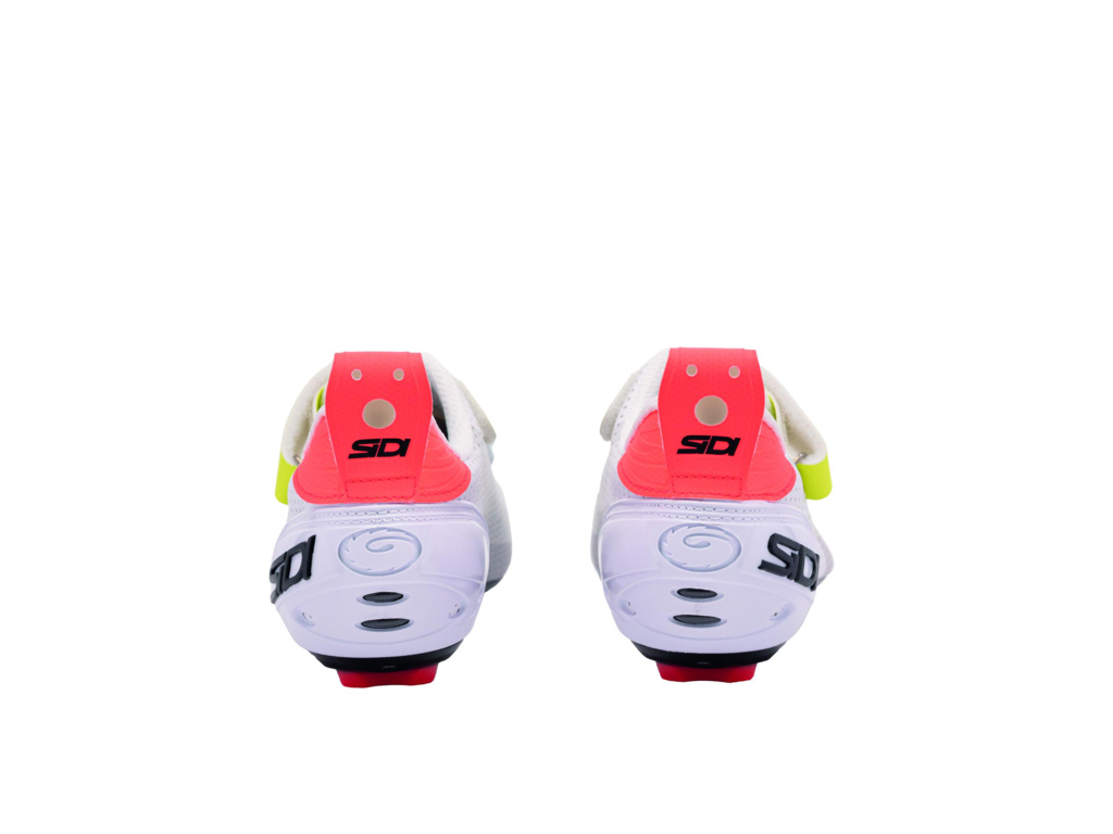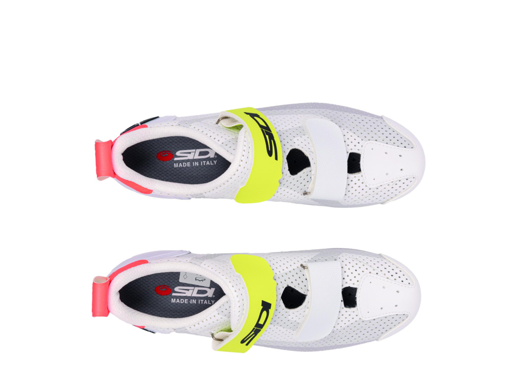 Svršek z odolného materiálu Politex neabsorbuje vodu a přitom si zachovává potřebnou tuhost pro efektivní přenos síly. Rychlé obutí a nastavení umožňuje dvojité zapínání na suchý zip, které se hodí zejména při přechodech v triatlonovém depu. Karbonová kompozitní podrážka s tuhostí 6 přináší ideální rovnováhu mezi pevností a pohodlím při delší jízdě. Odvětrání zajišťuje perforovaná konstrukce svršku, zatímco zesílený opatek SIDI Heel Counter stabilizuje patu a zvyšuje jistotu při šlapání. Celkový anatomický střih je navržen tak, aby bota perfektně seděla a nabídla komfort i při maximálním nasazení.