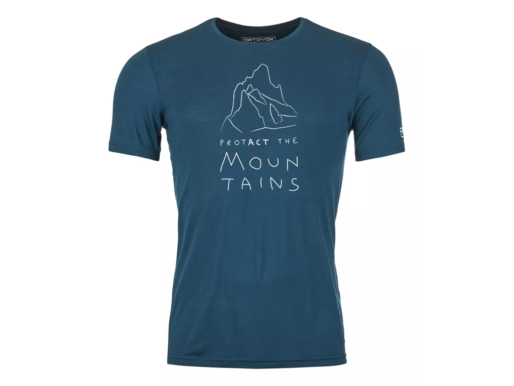 Stylový potisk s horskou tématikou “PROTACT THE MOUNTAINS” - 5% s ceny každého zakoupeného trička jde přímo do projektu ochrany klímy.
