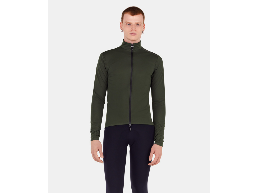 Použitý materiál tvoří z 48 % bio-materiály a představuje šetrnou volbu k přírodě. Bunda je kompletně podlepená, s voděodolným obousměrným zipem, lepenými manžetami a zadní kapsou na zip. Praktický detail – poutko na límci pro rychlé sušení a vnitřní štítek s příběhem ikonických stoupání okolo Bergama – potěší každého cyklistického srdcaře.